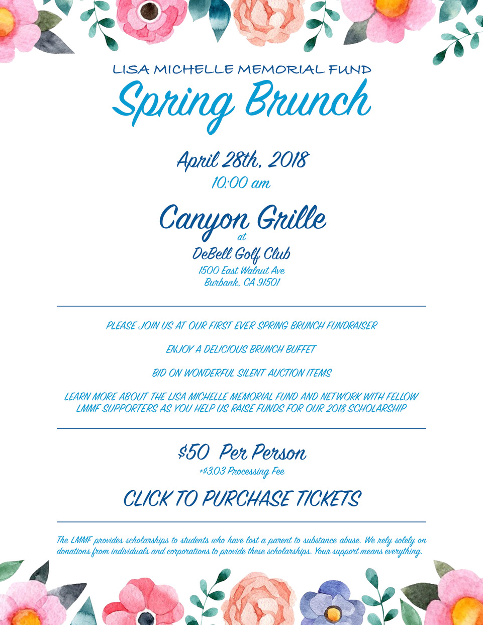 Purchase Tickets Now: LMM Fund Spring Brunch Fundraiser On March 7, 2018 By Danielle Olson Purchase Tickets Here Share this: Click to share on X (Opens in new window) X Click to share on Facebook (Opens in new window) Facebook Click to share on LinkedIn (Opens in new window) LinkedIn Click to email a link to a friend (Opens in new window) Email Related