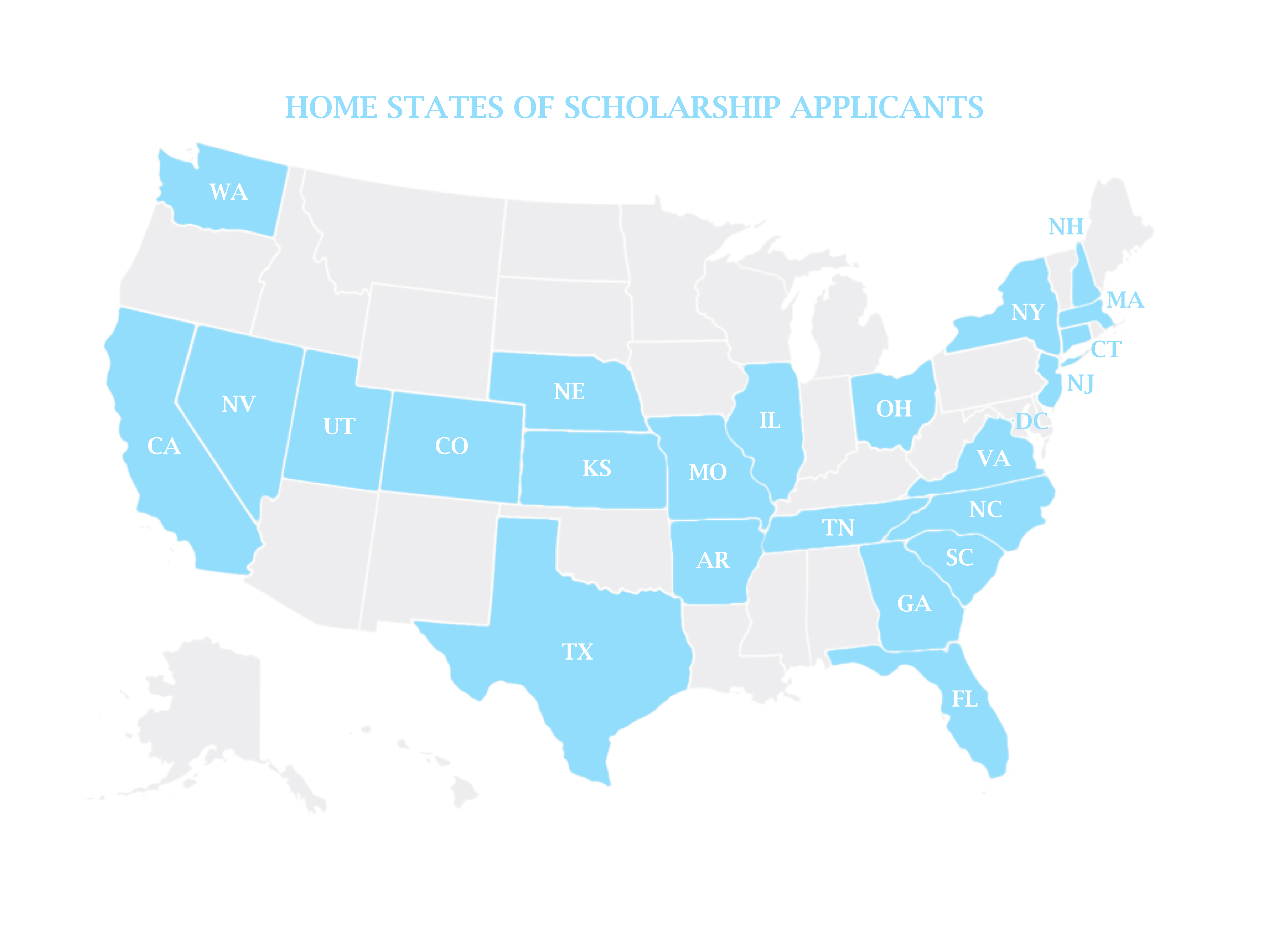 We have many deserving students apply for our scholarship every year and today we’d like to share how diverse our applicants are by showing where the concentration is within the United States.