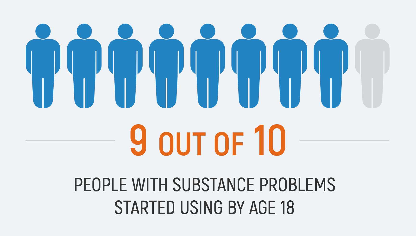 “October was first declared as National Substance Abuse Prevention Month in 2011. Since then, October has been a time to highlight the vital role of substance abuse prevention in both individual and community health has, to remember those who have lost their lives to substance abuse, to acknowledge those in recovery, as well as children, parents, family, and friends supporting them. Studies show that the earlier an individual starts smoking, drinking or using other drugs, the greater the likelihood of developing addiction. 9 out of 10 people who abuse or are addicted to nicotine, alcohol or other drugs began using these substances before they were 18. People who began using addictive substances before age 15 are nearly 7 times likelier to develop a substance problem than those who delay first use until age 21 or older. Every year that substance use is delayed during the period of adolescent brain development, the risk of addiction and substance abuse decrease. “ (NCTSN Website)